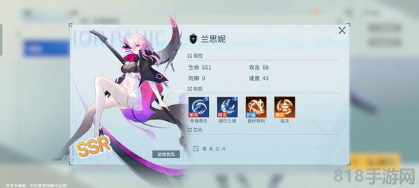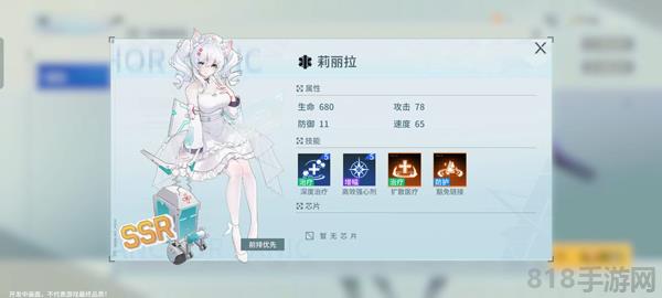 因為SSR里只有一個坦克,她就作為蘭思妮的下位替補吧!強度也是可以的,因為她的防御可以疊很高很高,同時也可以升格到SSR!